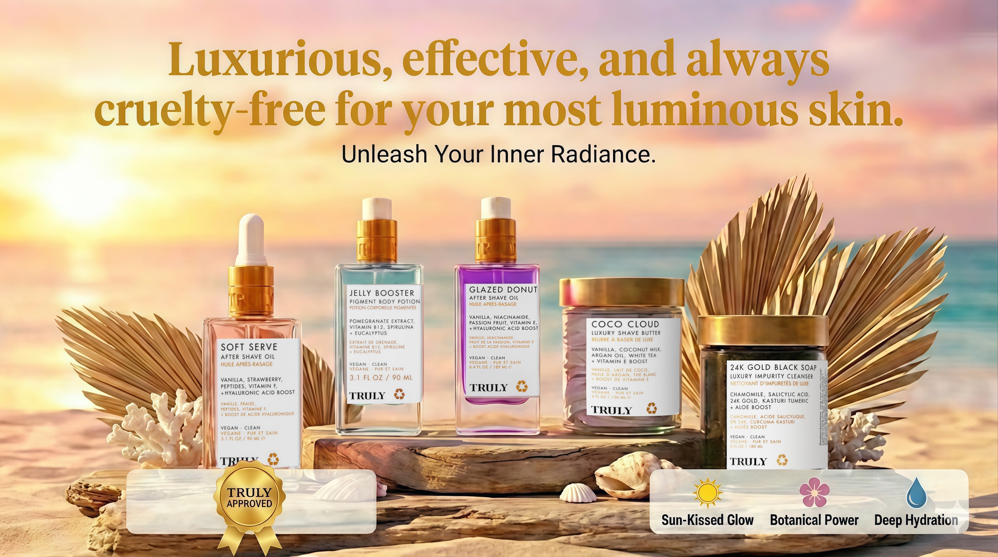 We believe you should never need to settle - So we spent years creating vegan & clean formulations that perform as well as conventional beauty products yet never compromise on the luxurious experience. Our team of experts has worked and continues to work with physicians, microbiologists & world renowned chemists to perfect Truly’s chemistry. We believed that by formulating with a clean and vegan base and combining with the most powerful, high performing skincare ingredients, Truly products would yield equal or better results than high end or natural products. The results are one of the most unique, “check all-boxes” line of personal care products available.